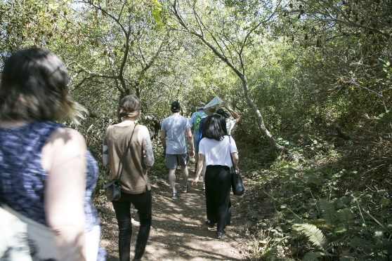 Stairwell’s brought a cheeky style of exploration to Headlands Center for the Arts for their series of artist-led Desire Trails walks. Participants used their senses to observe the environment in unexpected ways on a walk that interwove the historical with the experiential.