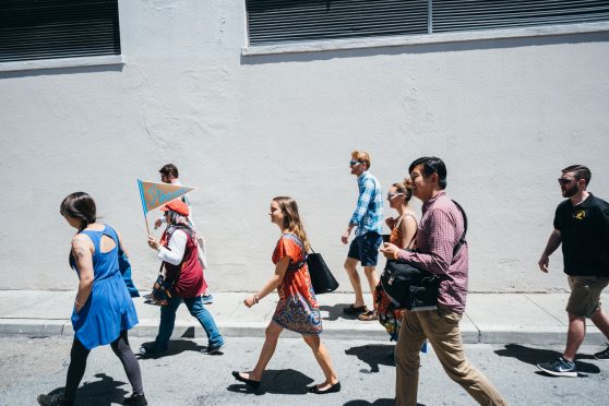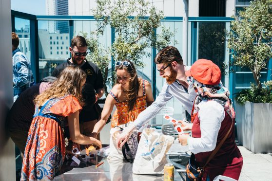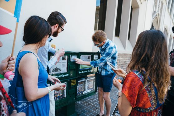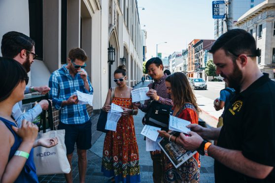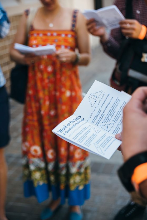Stairwell’s developed stair-themed activities and two new site-specific mini-Field Trips in the SOMA neighborhood for the Common Grounds Arts Festival Family Day, hosted by Intersection for the Arts. Each one-hour walking tour was led by Stairwell’s Co-Director Carey Lin in collaboration with guest Field Trip leaders Raheleh Minoosh Zomorodinia and Gabriel Gilder. Field Trip participants played games, explored stairs in the area, and wrote and decoded secret messages together.