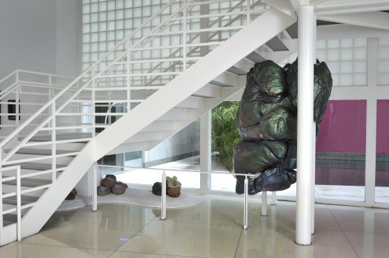 Amy M. Ho and Mike Rothfeld created new site-specific work responding to the stairs leading from YBCA’s Anteroom up to Gallery 3. The two artists’ conceptual approaches to their practices were deeply considered, taking form in paper mâché sculptures, large-scale photographic installations, projections and transparencies.